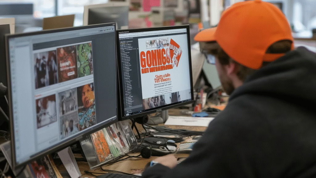 Instead of: “Young and energetic” Write: “Youth energy through bold color combinations (think Gen Z purple and lime green), dynamic diagonal compositions, mixed typography weights, slight motion blur effects, collage-style overlapping elements, hand-drawn accent elements”